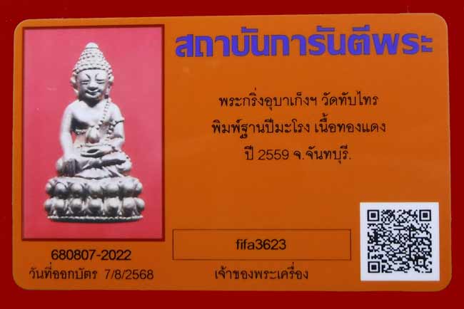 รายละเอียด แดงที่เคาะแรก !!! พระกริ่งอุบาเก็ง 12 นักษัตร ฐานปีมะโรง เนื้อทองแดง ปี2559 (ปลุกเสกวัดสุทัศน์) + บัตรพระแท้