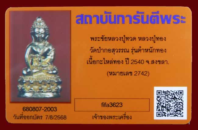 แดงที่เคาะแรก !!! พระชุด 8 องค์ (ฝังแผ่นโค๊ตเงิน+หมายเลข) รุ่นตำหนักทอง หลวงปู่ทวด หลวงพ่อทอง วัดป่ากอ จ.สงขลา ปี2540 กล่องเดิม + บัตรพระแท้