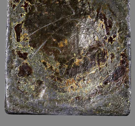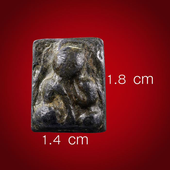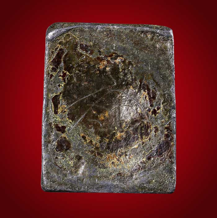 (ผู้ชนะประมูลไม่รับผิดชอบ)พระปิดตา หลังมีรอยจาร พิมพ์สี่เหลี่ยม (ไม่ทราบที่) เนื้อตะกั้วเก่า มีอายุ ขนาองค์พระ กว้าง 1.4 cm สูง 1.8 cm |