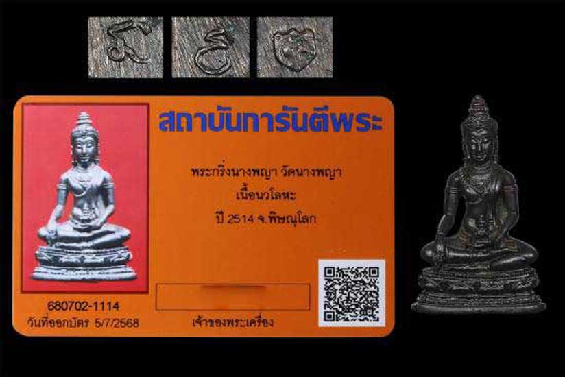 (ลดราคา วัดใจ เคาะเดียว) พระกริ่งนางพญา ปี 2514 เนื้อนวะโลหะ จ.พิษณุโลก ((( สภาพสวย ))) พร้อมบัตรรับรอง |