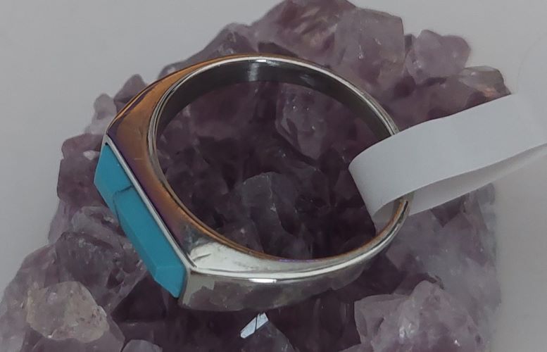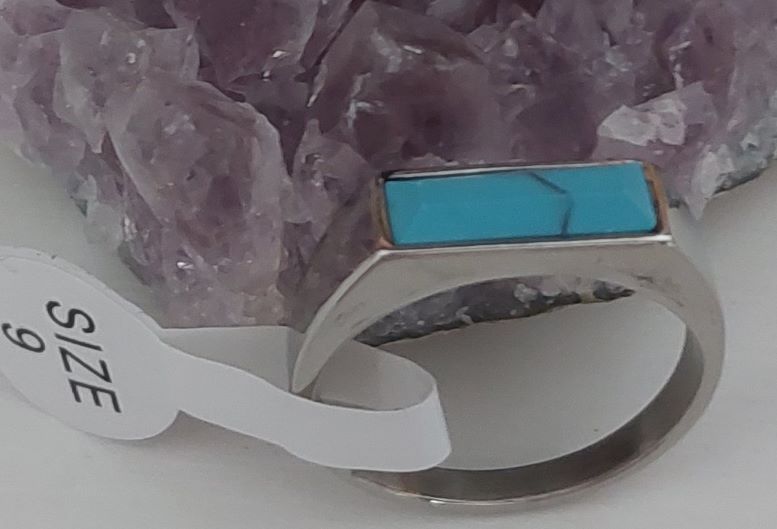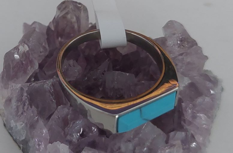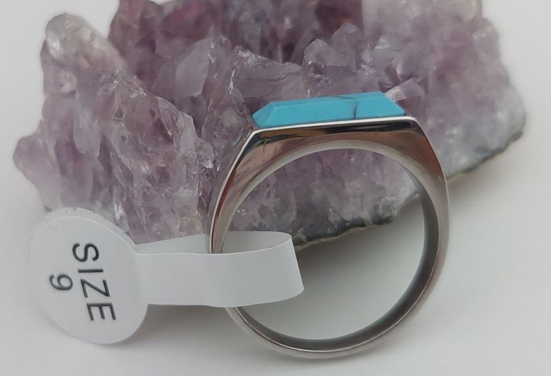 แหวนหัวเทอร์ควอยซ์หรือหินการเวก ตัวเรือนแหวนเป็นสแตนเลสขัดเงาไม่ลอกไม่ดำแข็งแรงทนทาน ขนาดแหวนเบอร์9 |
