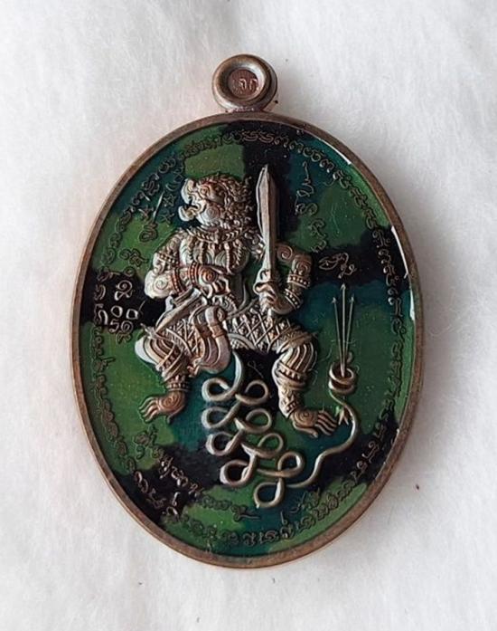 ล็อกเกตพหูรมาน รุ่น หนุมานแผลงฤทธิ์พิทักษ์ไทย หลวงปู่ศิลา หลวงปู่ขาน วัดคอนสาย เมตตาอธิษฐานจิต ลงยาลายทหาร หลังนวะพหูรมาน แจกทหาร No.319 |