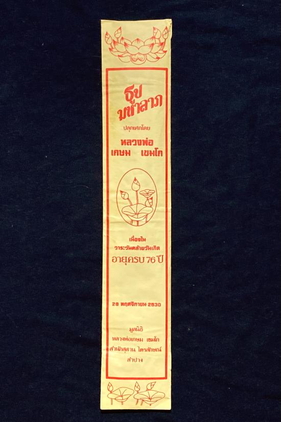 ธูปมหาลาภ หลวงพ่อเกษม เขมโก สุสานไตรลักษณ์ จ.ลำปาง ปี๒๕๓๐ |