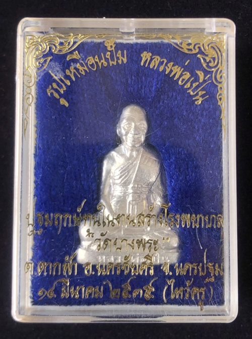 รูปหล่อปั้มรุ่นแรก หลวงพ่อเปิ่น วัดบางพระ ( เนื้อเงิน ) ปี 2535 จ.นครปฐม สภาพสวย มาพร้อมกล่องเดิมครับ