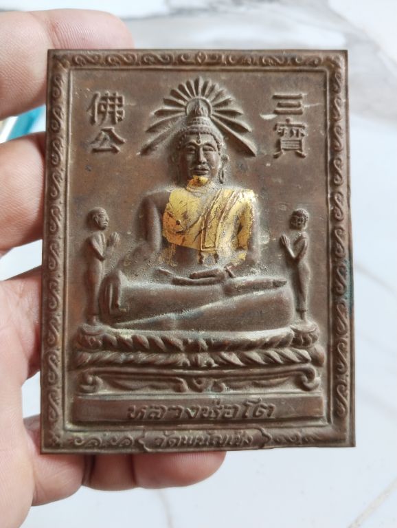 แผ่นปั้มบูชา หลวงพ่อโต วัดพนัญเชิง (ซำปอกง) อยุธยา ผิวหิ้งบ้านๆ