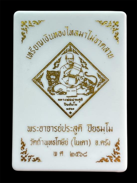 เหรียญข้าวหลามตัด"เงินทองไหลมาไม่ขาดสาย" หลวงพ่อประสูติ ปิยธัมโม วัดถ้ำพระพุทธโกษีย์(ในเตา)จ.ตรัง เนื้ออัลปาก้า ลงยาแดงพื้น ลงยาจีวร No.20 พร้อมกล่องเดิมครับ |
