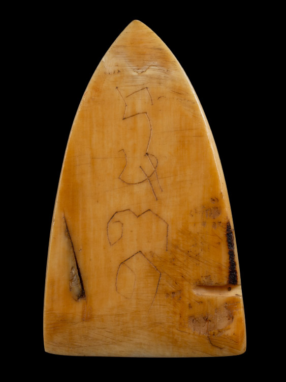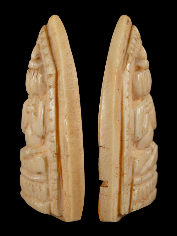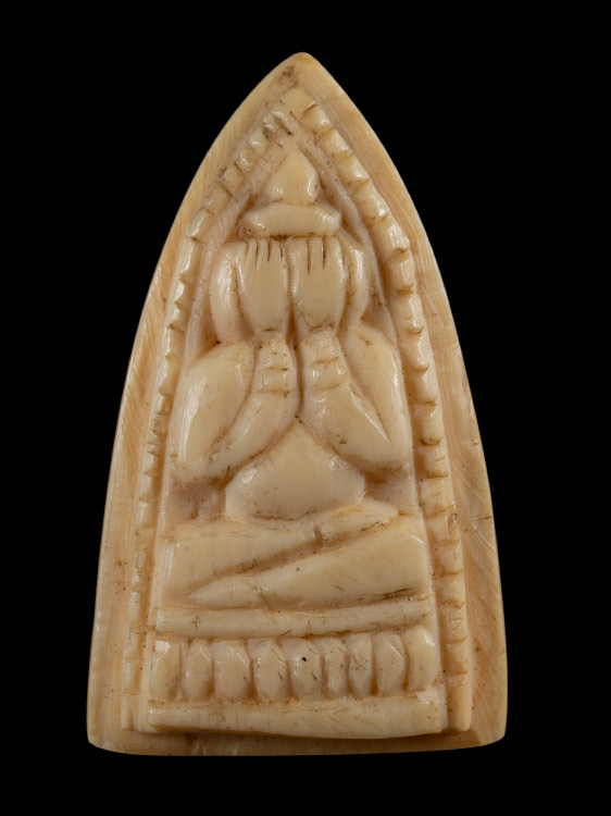 พระปิดตา เนื้อ งาช้างแกะ ปี 2485-2500 (ไม่ระบุที่สร้าง) (ขนาด 2x3.3 ซม.) |