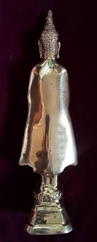 พระบูชา ปางรำพึง ขนาดสูงประมาณ 9 นิ้ว ประทับยืนบน ฐาน 4 เหลี่ยม มีบัวคว่ำบัวหงาย ใต้ฐานอุดดินไทย เนื้อทองเหลืองสวยกริบ สภาพเก่าเก็บในถุงพลาสติกไม่ผ่านการใช้ตามรูป ส่งฟรีทั่วไทย รับประกันตามกฎครับ |