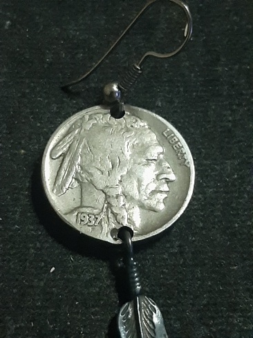 ต่างหูเหรียญเงินอเมริกา ปี ค.ศ.1937 จำนวน 1 คู่ สภาพสวยเดิมๆ (เคาะเดียว)