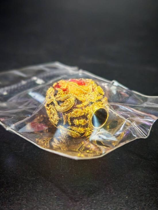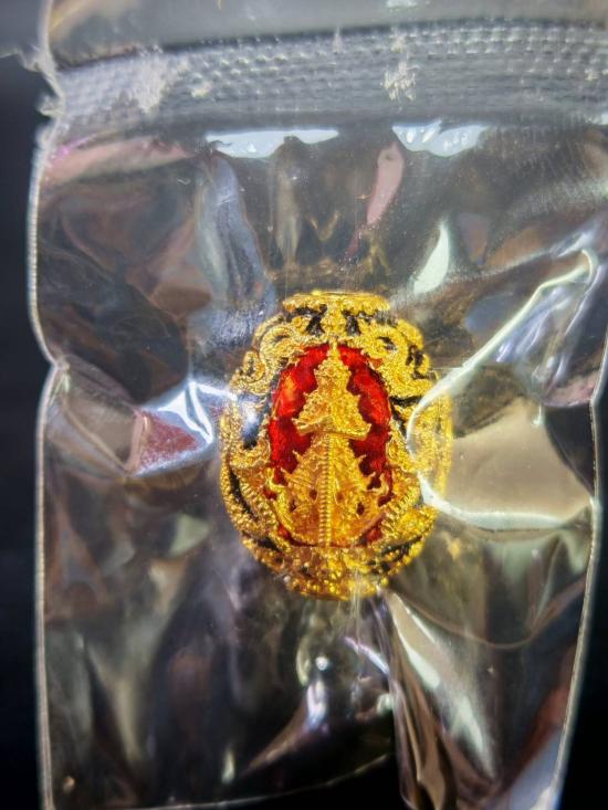 รกที่.23 เนื้อแบล๊คโรเดียมลายทอง ลงยาสีแดง สมนาคุณผู้บริจาคซื้อที่ดิน 5000 บาท ผู้ชนะประมูลรับพระ 1 องค์ ซิลเดิมๆ