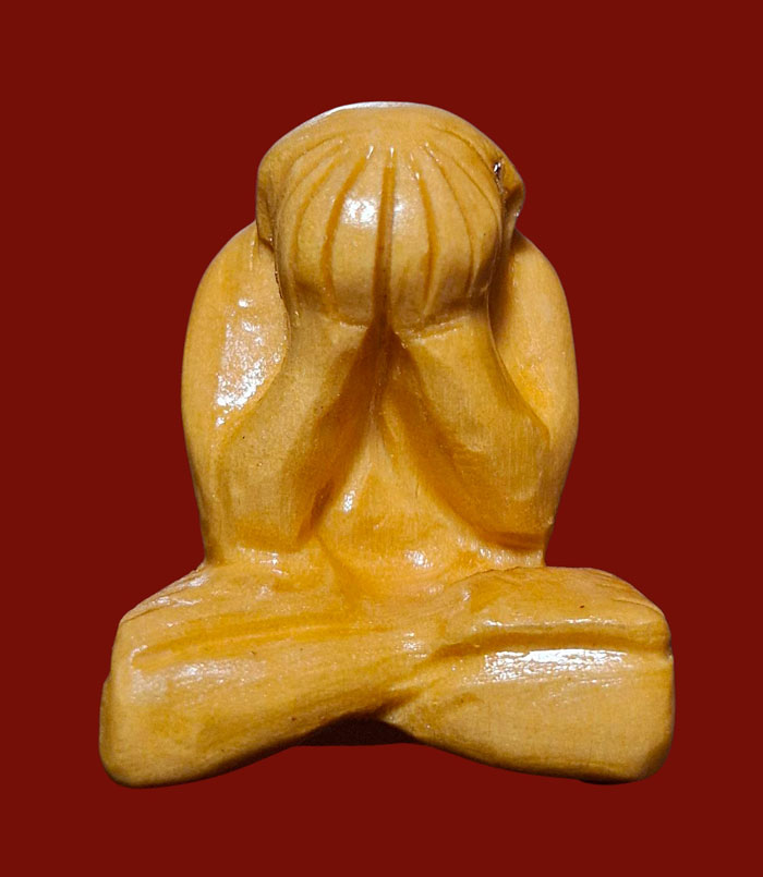 พระปิดตา(ไม้โมก) รุ่นคู่บุญคู่บารมี รุ่นแรก(อุดผง ฝังตะกรุด ฝังเส้นเกศา)หลวงปู่คำบุ วัดกุดชมภู จ.อุบลฯ ปี 2555 หมายเเลข ๖๖ ก |