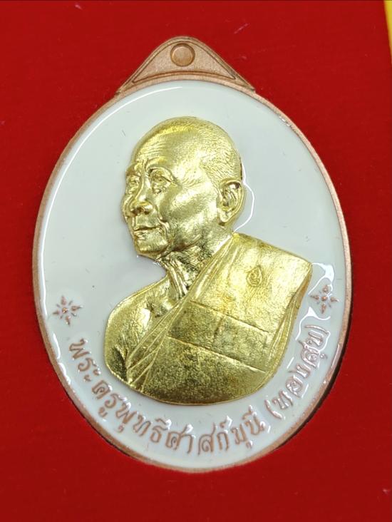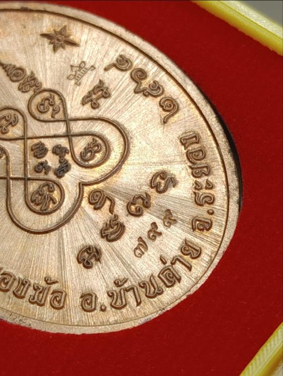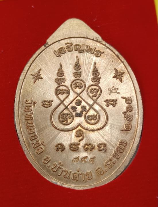 เหรียญเจริญพรหันข้าง หลวงพ่อทองสุข วัดหนองฆ้อ เลขสวย ๗๙๙ ทองแดงผิวไฟ ลงยา หน้ากากฝาบาตาร มีกล่อง