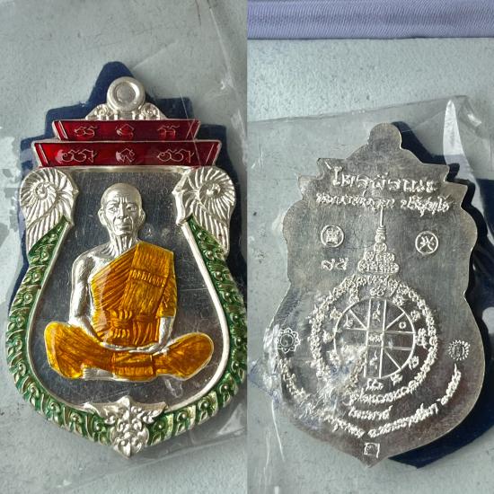 มีเหรียญ เนื้อเงินปะฉลุ ลงยาจีวรเหลือง