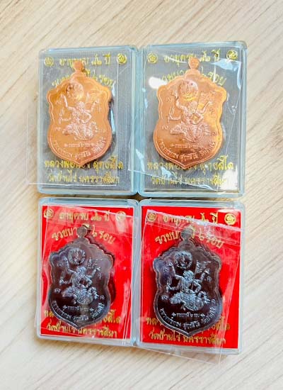 วัดใจ เหรียญรุ่นรวยบารมี 6 รอบ หลวงพ่อทอง วัดบ้านไร่ จ.นครราชสีมา 4 เหรียญ