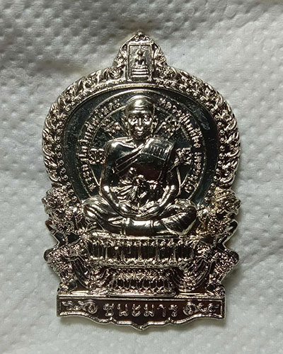 เหรียญนั่งพานชนะมาร หลังหนุมานเชิญธงชนะศึก หลวงปู่เกลี้ยง วัดโนนแกด รุ่น"ชนะมาร" เนื้ออัลปาก้า สร้าง 2556 เหรียญ