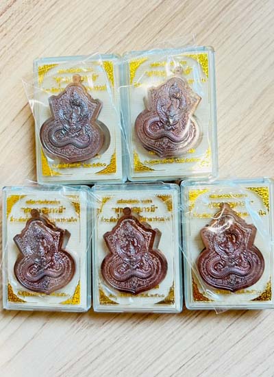 วัดใจ เหรียญนาคปรก รุ่นพุทธบุญบารมี หลวงปู่บุญ ธมมธีโร วัดบ้านหมากมี่ จ.อุบลราชธานี เนื้อทองแดงมันปู 5 เหรียญ |