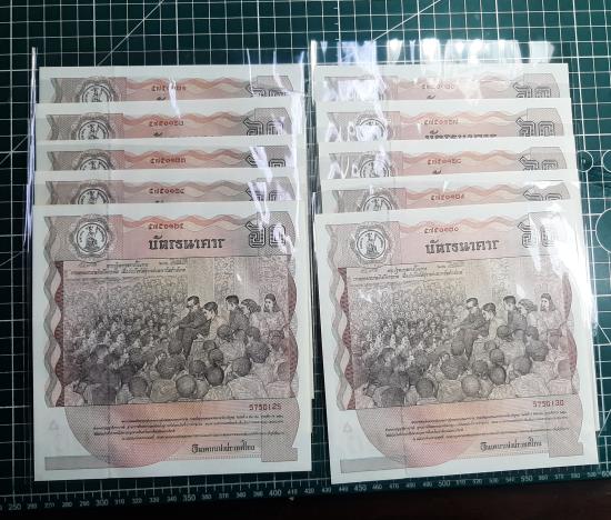 ธนบัตร 60บาท 60พรรษา รัชกาลที่9 จำนวน10ใบ สภาพไม่ผ่านการใช้ เลขเรียง 5750121-30