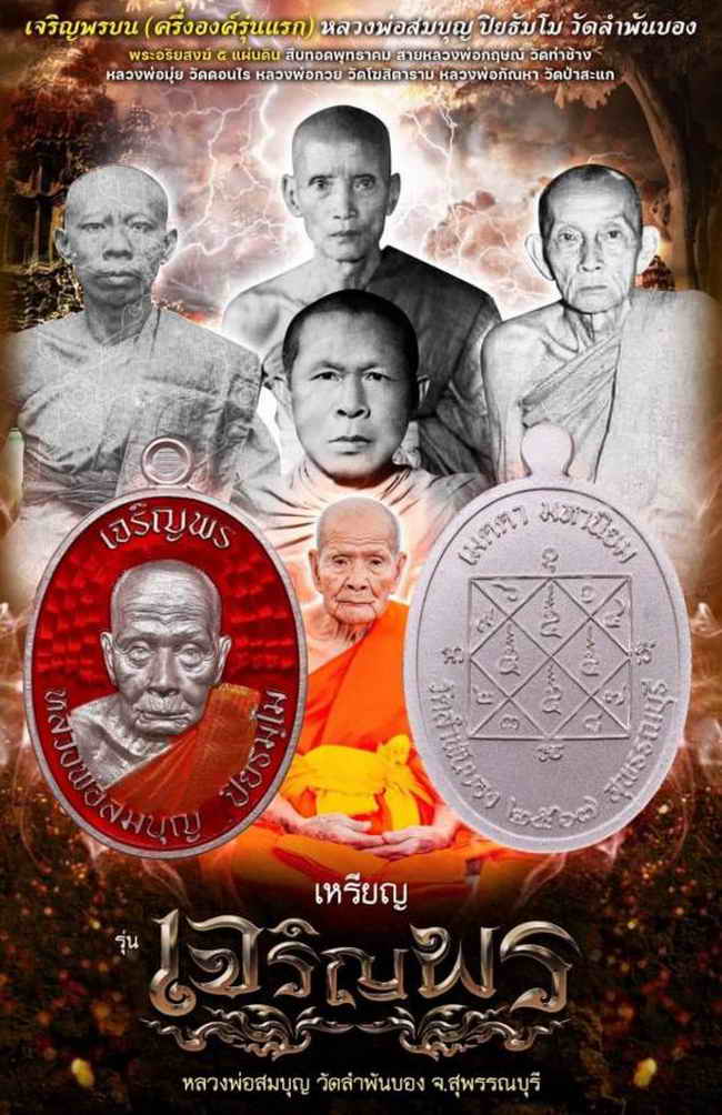 หลวงพ่อสมบุญ วัดลำพันบอง สุพรรณบุรี รุ่น เจริญพรบน หลวงปู่สมบุญ เเพคคู่ รับพระ 2 เหรียญ กล่องครบ |