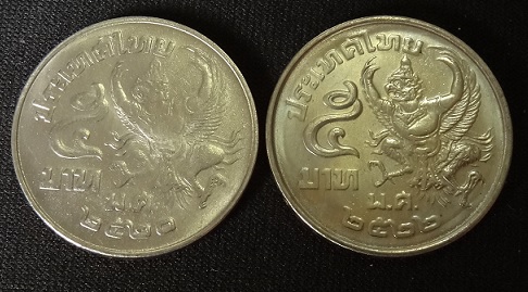 เหรียญ ในหลวงร.9 5 บาท ครุฑเฉียง ปี20 ,ปี 22 unc รวม2เหรียญ น้ำทองสวย วิ้งๆๆ