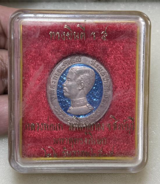 *วัดใจ* เหรียญรัชกาลที่๕ หลวงพ่อแพ วัดพิกุลทอง พิมพ์ใหญ่ เนื้อเงินลงยา พร้อมกล่อง