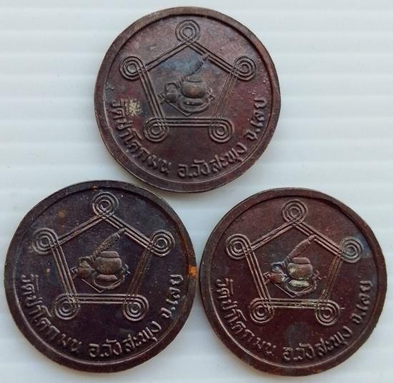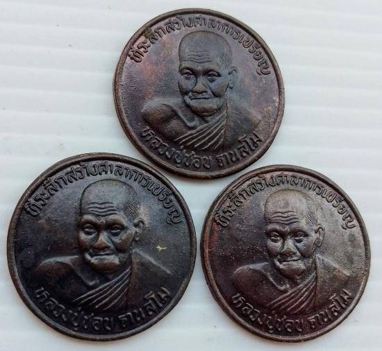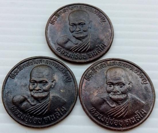เหรียญหลวงปู่ชอบ ฐานสโม ที่ระลึกสร้างศาลาการเปรียญ วัดป่าโคกมน จ.เลย จำนวน 3 เหรียญ