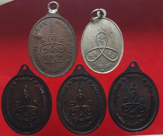 เหรียญหลวงปู่ม่น วัดเนินตามาก ชลบุรี เนื้อทองแดง 4 เหรียญ/อัลปาก้า 1 เหรียญ เคาะเดียวแดง |