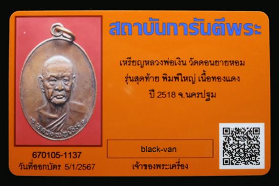 เหรียญรุ่นสุดท้าย หลวงพ่อเงิน วัดดอนยายหอม เนื้อทองแดง ปี2518 จ.นครปฐม พร้อมบัตรรับรอง G-pra ครับ |