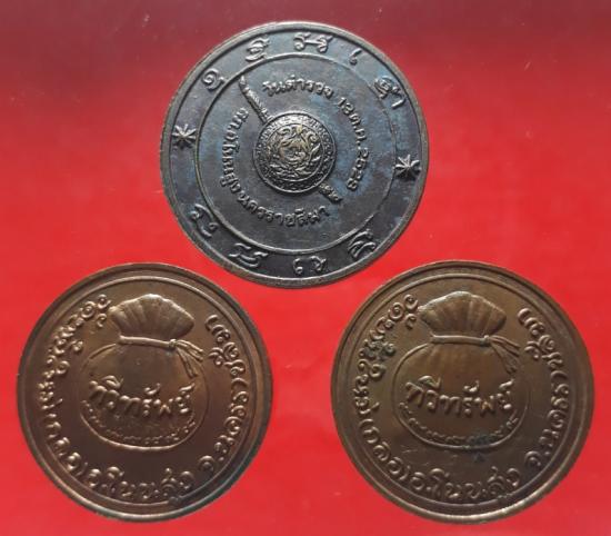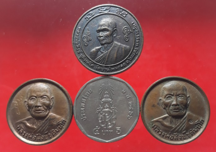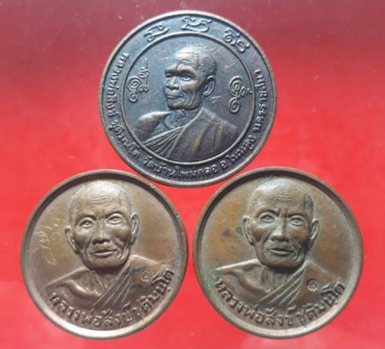 เหรียญหลวงพ่อสังข์ วัดบ้านใหม่กลอ นครราชสีมา เนื้อทองแดง-มีจาร 3 เหรียญ เคาะเดียวแดง