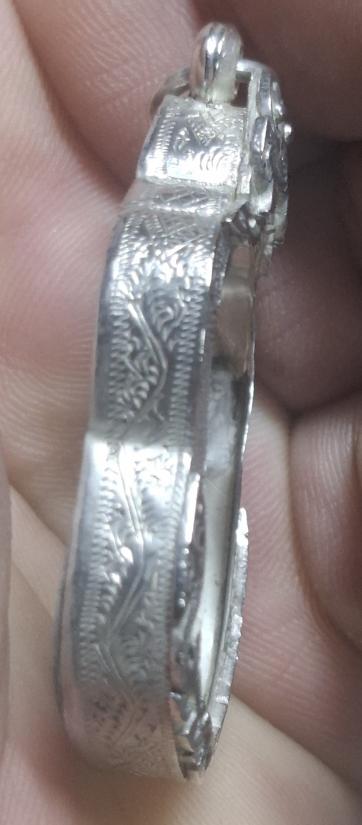 กรอบเงินมือสอง งานมือ ใส่เหรียญเสมาขุดสระ หลวงปู่หงษ์ สภาพสวยครับ |