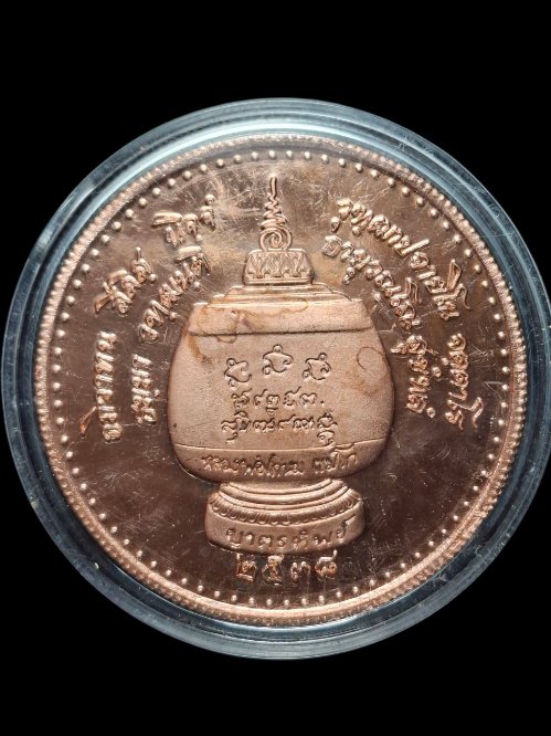 เหรียญบาตรน้ำมนต์หลวงพ่อเกษม เขมโก รุ่นบาตรทิพย์ เนื้อทองแดง ขนาด 5 ซม. ปี 2538 ตอกโค๊ต "นะ" |