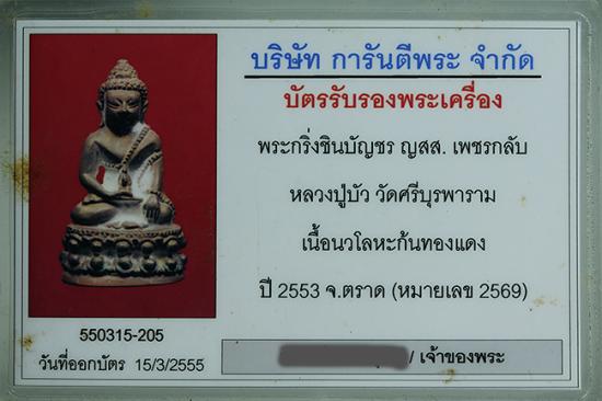 พระกริ่งชินบัญชร ญสส เพชรกลับ หลวงปู่บัว ถามโก วัดศรีบูรพาราม จ.ตราด พ.ศ.2553 เนื้อนวะโลหะก้นทองแดง