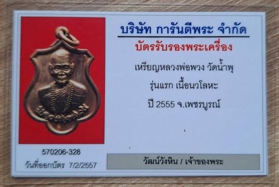 เหรียญรุ่นแรก หลวงพ่อพวง วัดน้ำพุ ปี 55 เนื้อนวโลหะ พร้อมซองเดิมครับ