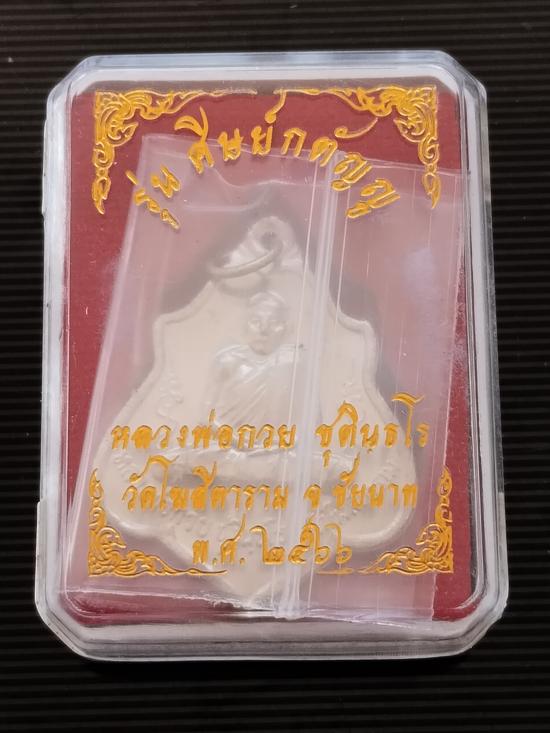 เหรียญโล่หลังยันต์เนื้อทองแดงรมดำและเหรียญโล่หลังหนุมานเนื้ออัลปาก้ารุ่นศิษย์กตัญญูปี 2566 หลวงพ่อกวยวัดโฆสิตารามชัยนาท |