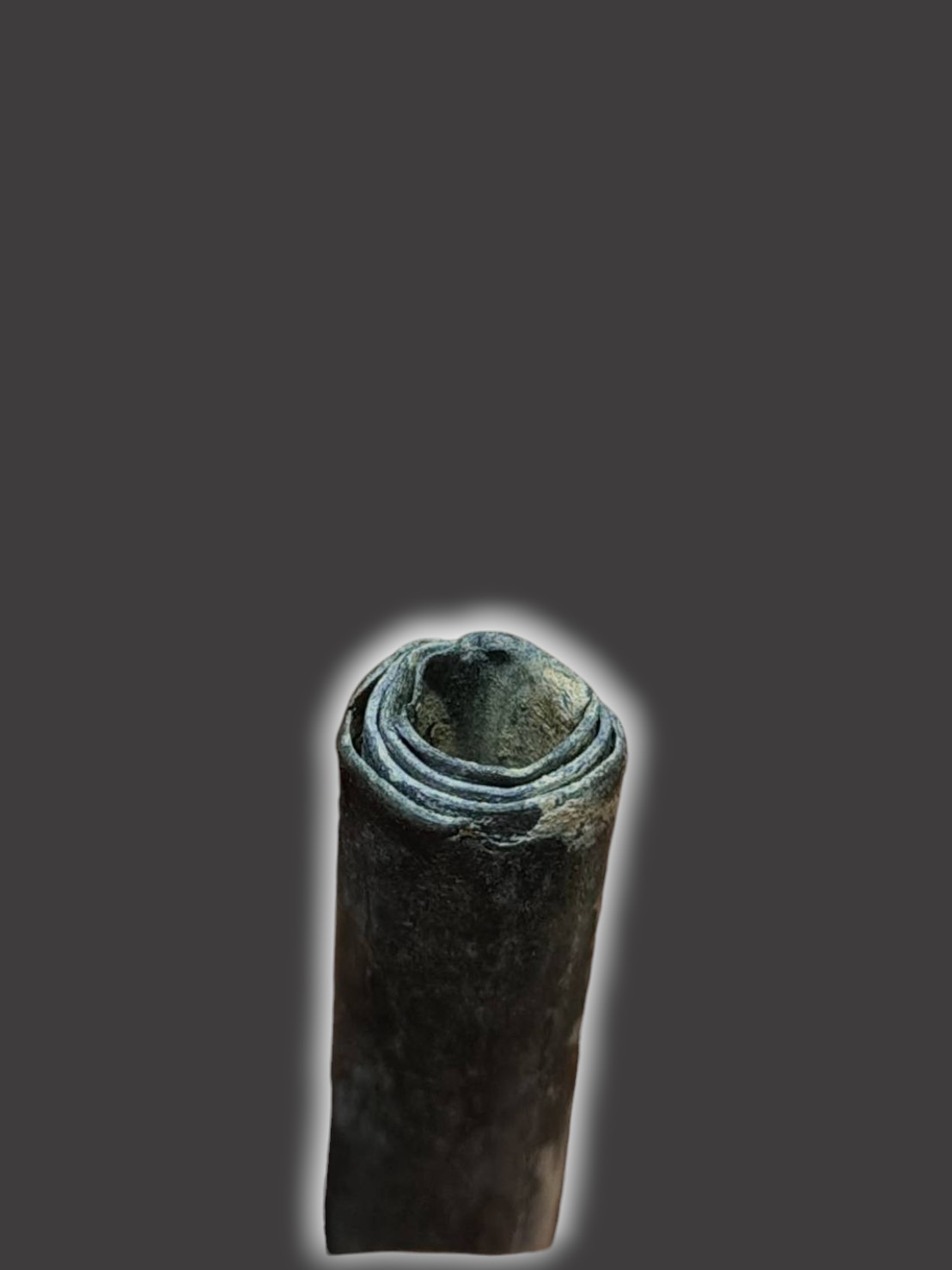 A1256.ตะกรุดเก่า เนื้อตะกั่ว ม้วนหนาๆ ไม่ทราบที่ ยาว 2 นิ้ว เคาะเดียวเเดง |