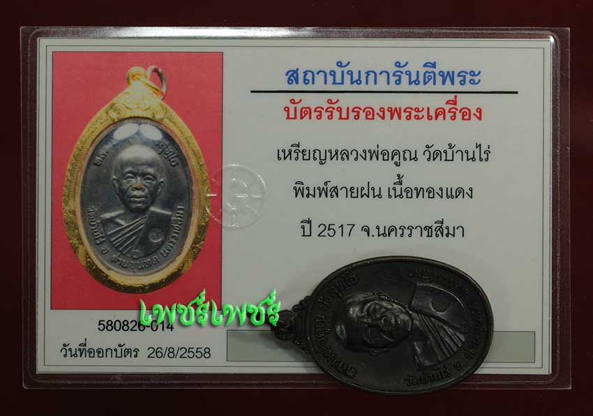 เหรียญ หลวงพ่อคูณ วัดบ้านไร่ พิมพ์สายฝน เนื้อทองแดง ปี2517 จ.นครราชสีมาสภาพสวยๆเดิมๆ พร้อมบัตรรับรองพระแท้จากการันตีพระสบายใจได้พระแท้แน่นอน ค่ะ