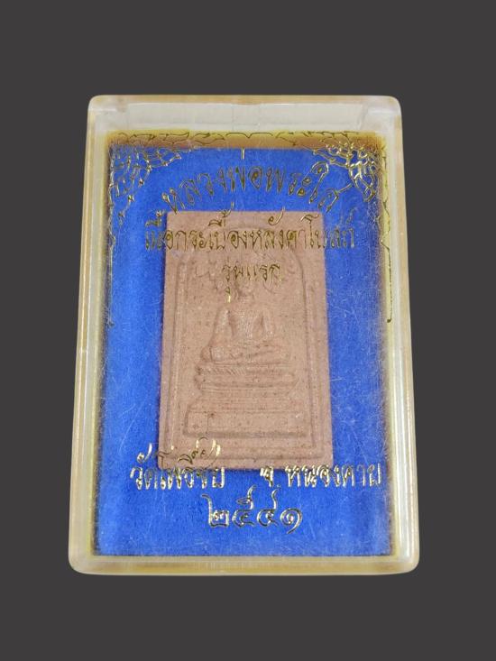 A1290.หลวงพ่อพระใส เนื้อกระเบื้องหลังคาโบสถ์ วัดโพธิ์ชัย กล่องเดิม เคาะเดียวเเดง |