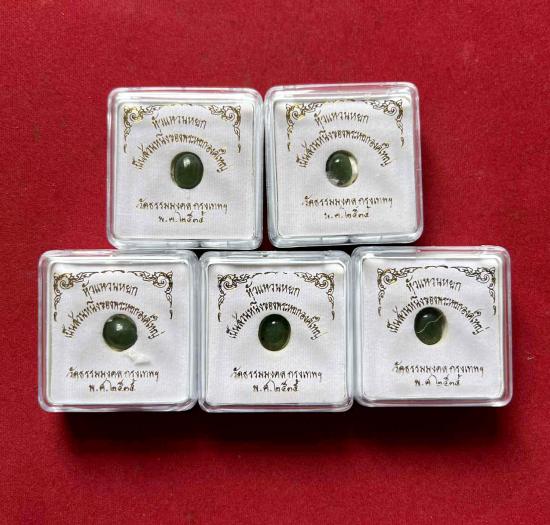 หัวแหวนหยก ส่วนหนึ่งของพระหยก องค์ใหญ่ที่สุดในโลก จัดสร้างโดย หลวงพ่อวิริยังค์ (สมเด็จพระญาณวชิโรดม) วัดธรรมมงคล พ.ศ. 2536 ยกชุด 5 หัวกล่องเดิม เคาะแรก |