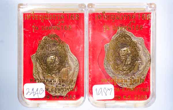 *ทีเดียว 2 องค์ ทองทิพย์รมซาติน เข้มขลังมาก เหรียญมังกรคู่168 รุ่นปลดหนี้168 หลวงปู่หมุน ฐิตสีโล ออกวัดบ้านจาน ปี66 เคาะเดียวแดง* |