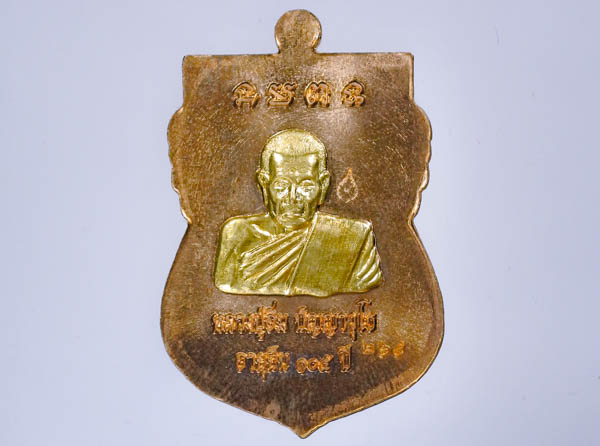 *หน้ากาก หน้าหลัง เหรียญเสมาอายุยืน115ปี หลวงปู่อิ่ม วัดทุ่งนาใหม่ ด้านหน้า พ่อท่ายคล้าย วาจาสิทธิ์ หลังหลวงปู่อิ่ม เนื้อทองทิพย์ลงยา |