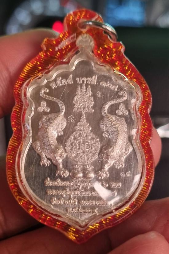 หลวงพ่อทอง วัดบ้านไร่ เหรียญพยัคฆ์บารมี 168 เนื้อเงินลงยา พร้อมเลี่ยมกันน้ำเลข 18 เคาะแรกแดง