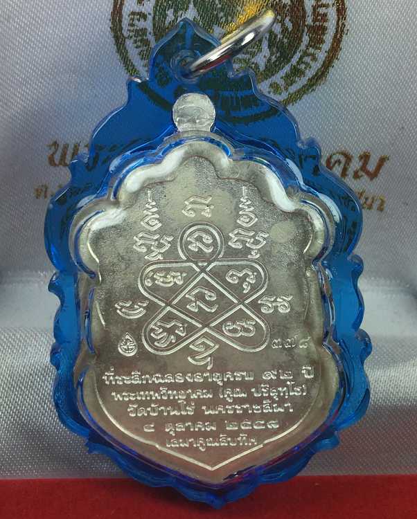 วัดใจ***เสมาคูณสิบทิศ ปี ๒๕๕๘ เหรียญเสมาหลวงพ่อคูณ ปริสุทโธ วัดบ้านไร่ "๑ ใน ๓๙๙ เหรียญ" เนื้อเงิน หน้ากากเงิน ขอบเงิน ลงยา ๓ สี (บนแดง ขอบน้ำเงิน จีวรเหลือง) หมายเลข ๓๗๘ เลี่ยมกันน้ำ