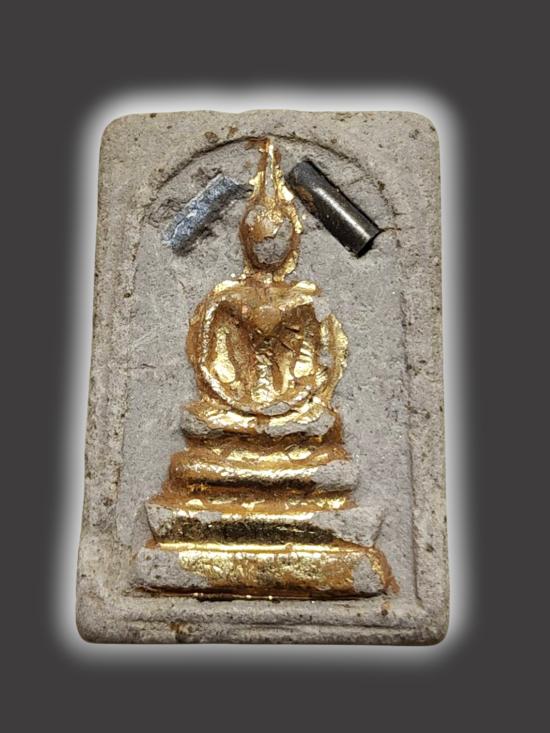 A1301.สมเด็จพิมพ์กลาง ฐาน 3 ชั้น ปิดองค์ทองฝังตะกรุด 2 ดอก หลังยันต์ ไม่ทราบที่ เคาะเดียวเเดง |