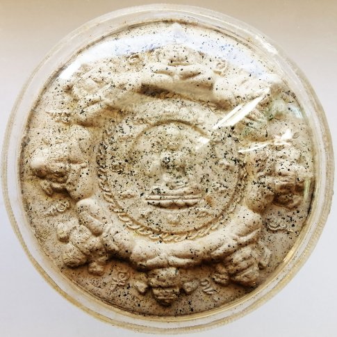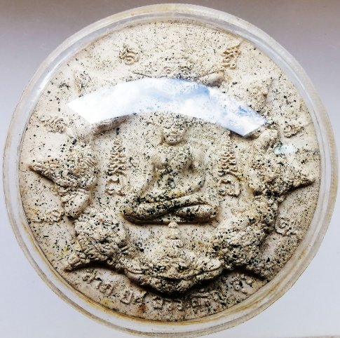รายละเอียด องค์จตุคามรามเทพ รุ่นเงินไหลมา รุ่นแรก วัดพระธาตุ จ.นครศรีธรรมราช ลาภ ยศ สรรเสริญ สุข พิมพ์ใหญ่ เนื้อขาว โรยแร่ หน้าพระพุทธสิหิงค์ หลังองค์พ่อจตุคามรามเทพ ล้อมด้วยปิดตาพังพระกาฬ ขนาด 5 ซ.ม สภาพสวยเก็บเดิม ๆ เลี่ยมพลาสติกเข้ารูปกันน้ำ (ไม่มีกล่อง)