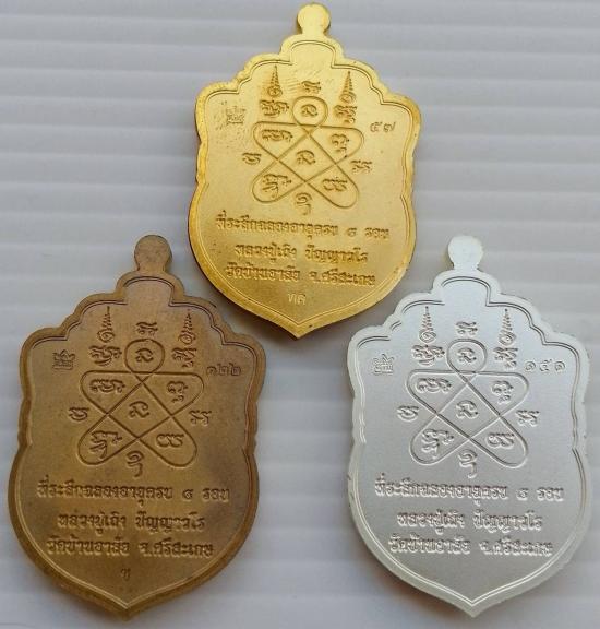 3. เนื้อชุบเงินโบราณ ลงยาแดง ขอบน้ำเงิน ซุ้มเขียว หน้ากากชุบทองโบราณ ตอกนัมเบอร์ 151 |