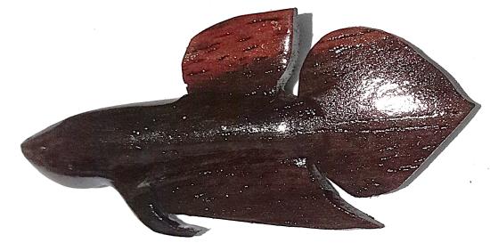 ปลากัด หลวงปู่น่วม วัดโพธิ์ศรีเจริญ จ.สุพรรณบุรี (เนื้อไม้พญางิ้วดำ) ลงอักขระยันต์) |