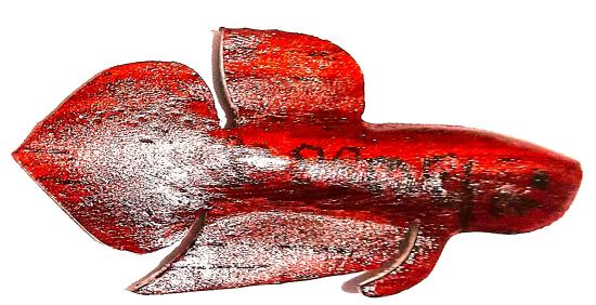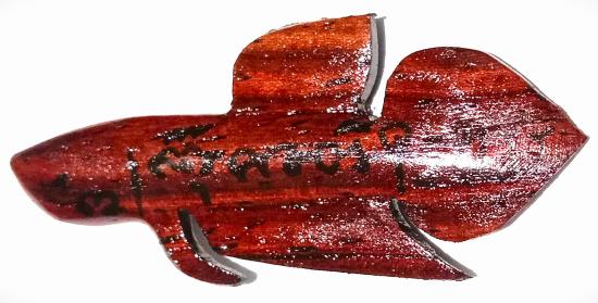 ปลากัด หลวงปู่น่วม วัดโพธิ์ศรีเจริญ จ.สุพรรณบุรี (เนื้อไม้พยุง ลงอักขระยันต์) |