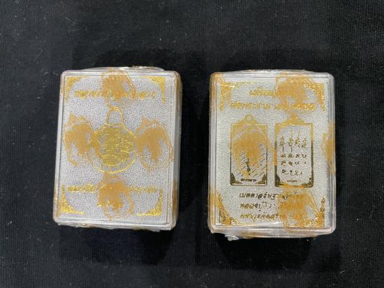 เหรียญยันต์ศรพระราม เนื้อทองแดงรมดำ + พญาเต่าเรือนมหาลาภ พิมพ์เล็กมวลสาร ซีลเดิม หลวงปู่ศิลา สิริจันโท อธิษฐานจิต |