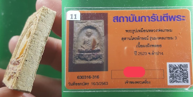 "วัดใจ" พระผงรูปเหมือน มงคลเกษม 3 หลวงพ่อเกษม เขมโก ฝังพลอยเสก ติดจีวร สภาพสวยเดิมพร้อมบัตรฯ |