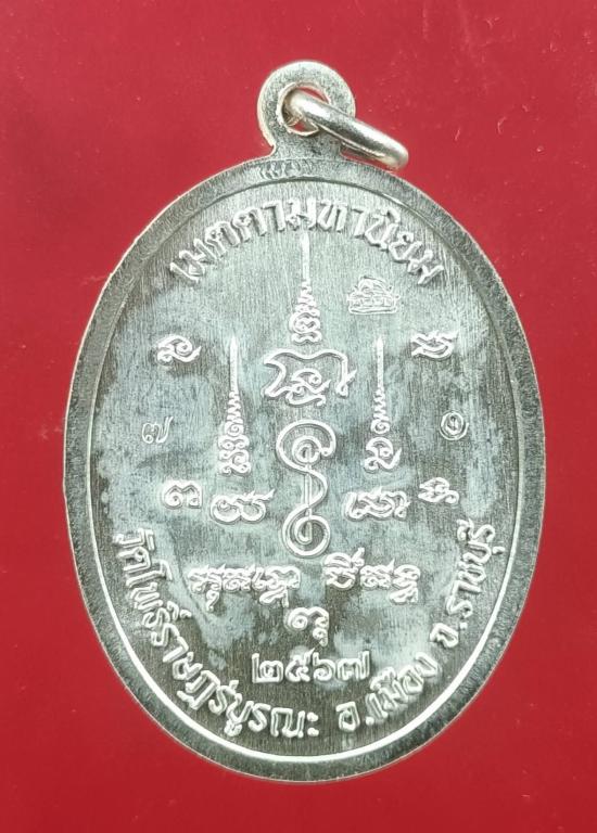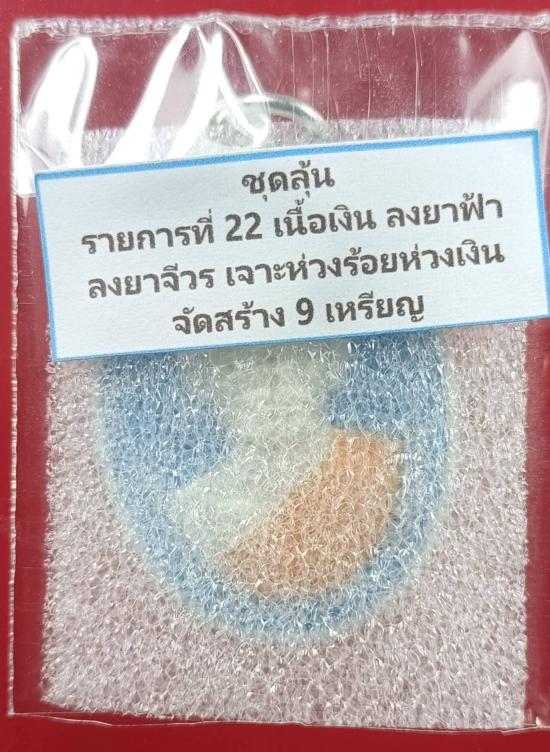 เหรียญเจริญพรบน รุ่นแรก พระอาจารย์อนุชา วัดโพธิ์ราษฎร์บูรณะ จ.ราชบุรี เนื้อเงิน ลงยาฟ้า ลงยาจีวร เจาะห่วงร้อยห่วงเงิน หมายเลข 7
