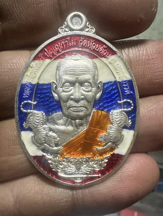 เหรียญเนื้องเงินทรัพย์พยัคฆ์ ลงยาธงชาติ หลวงพ่อพัฒน์ วัดห้วยด้วน เนื้อเงิน ปี2564 หมายเลข4